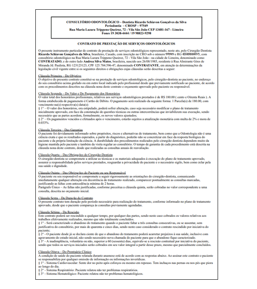Todo tratamento odontológico deve ser acompanhado de um contrato claro e um Termo de Consentimento Livre e Esclarecido (TCLE), garantindo segurança tanto para o dentista quanto para o paciente. No entanto, preencher esses documentos manualmente é um processo demorado e sujeito a erros.