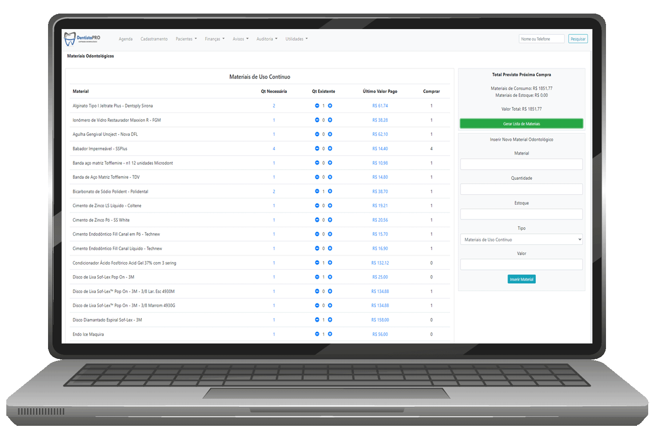 Com o DentistaPRO, você nunca mais será pego de surpresa por falta de materiais!