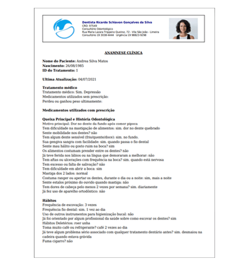 ✅ Anamnese Clínica – Um questionário detalhado com 30 perguntas rigorosamente selecionadas para fornecer uma visão completa da saúde bucal e auxiliar no diagnóstico preciso.